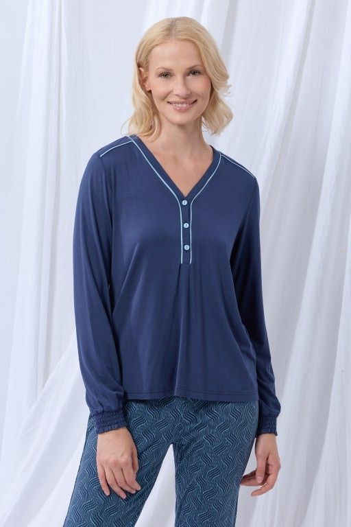 Een mooie pyjama van Lords x Lilies. Een vestje met lange mouwen en een lange broek. Elegant en zacht in single jersey stretch.