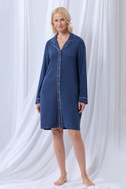 Een elegant slaapkleedje van Lords x Lilies. Een hele zachte single jersey strech, met knoopjes vooraan. Katoen jersey. Dit A-lijn kleedje is op knielengte.