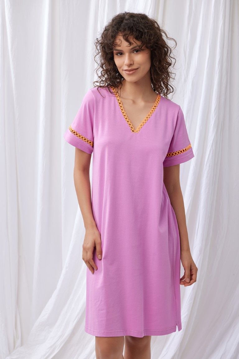 Een elegant slaapkleedje van Lords x Lilies. Een eenvoudig recht nachthemdje, met V-hals in hele zachte katoen jersey.