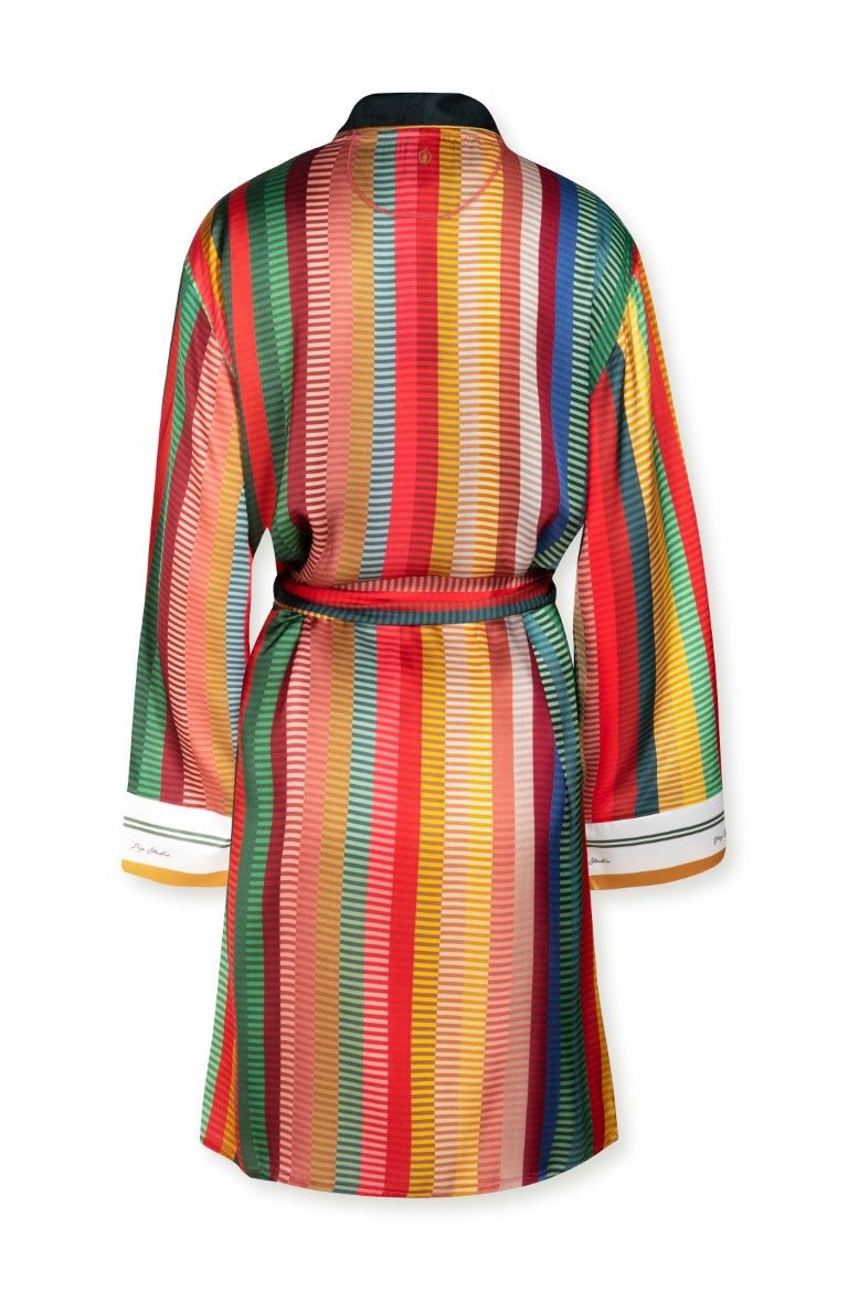 Een kleurrijke twist met deze kamerjas van PiP-studio. Deze kimono is in een fijne geweven polyester, met een mooie jacquard stripe..