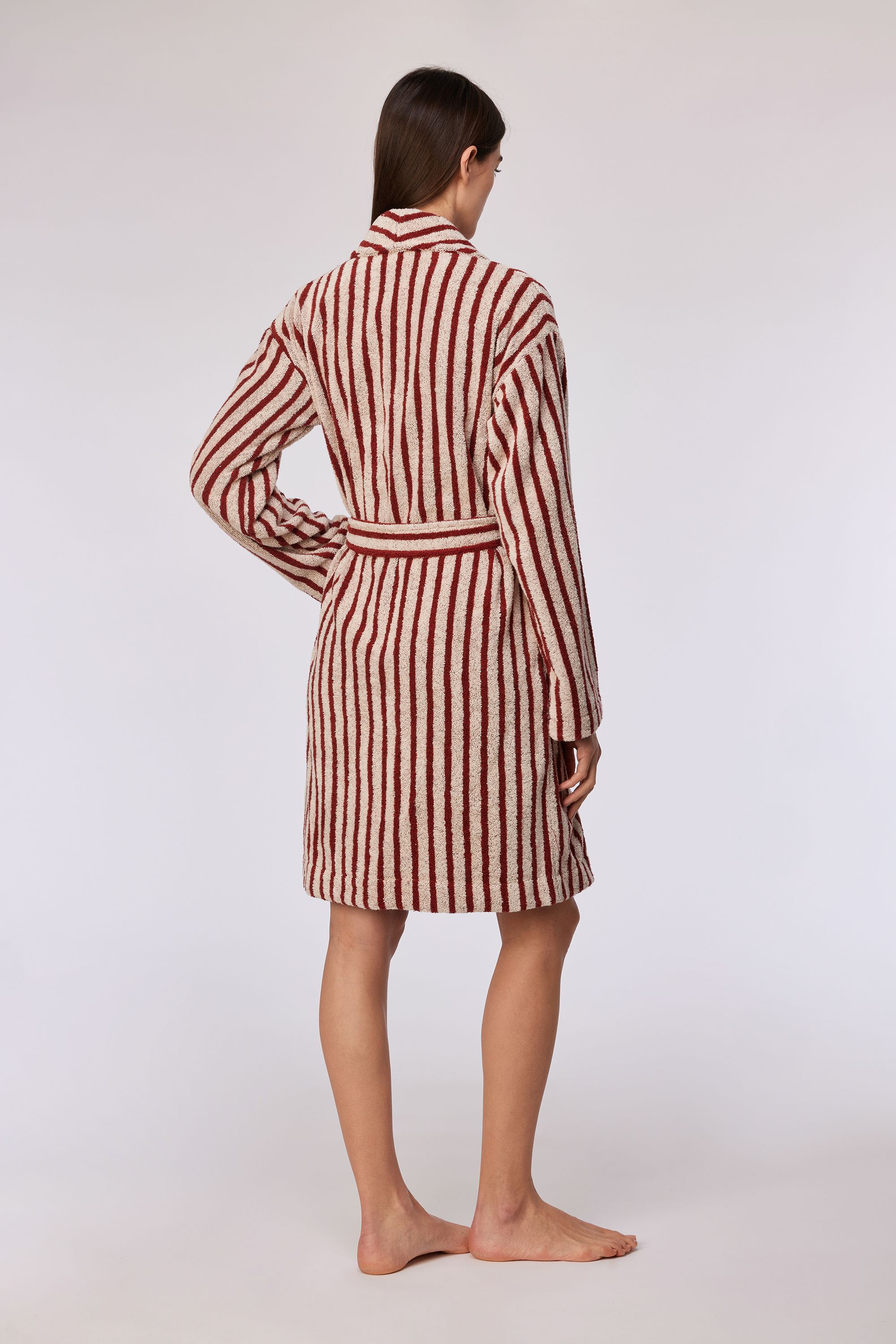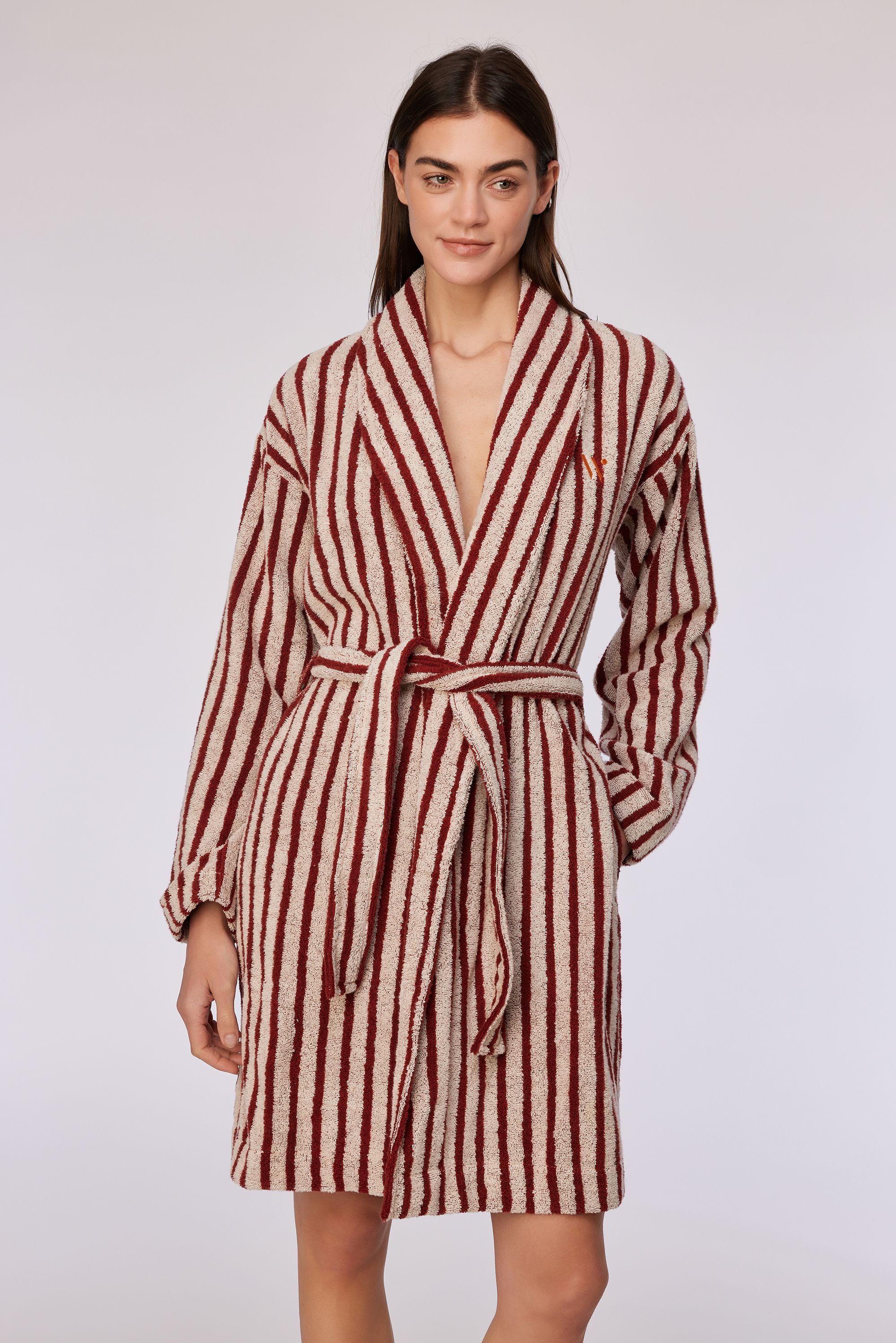 Woody Dames badjas beige-bordeaux stree