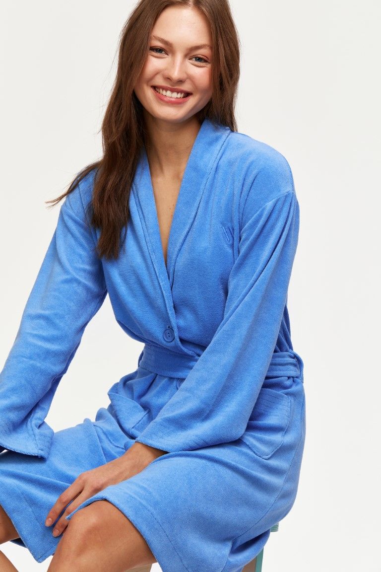 Een mooie Woody kamerjas in een zachte katoen, terry kwaliteit. Met knoopjes vooraan en een riem. Happy summer vibes! Het is een prachtige badjas in deze Woody collectie. Ideaal voor de frisse zomeravonden.