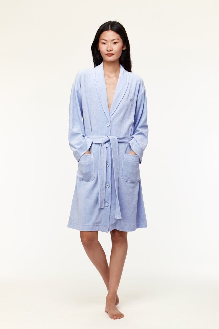 Een mooie Woody kamerjas in een zachte katoen, terry kwaliteit. Met knoopjes vooraan en een riem. Happy summer vibes! Het is een prachtige badjas in deze Woody collectie. Ideaal voor de frisse zomeravonden.