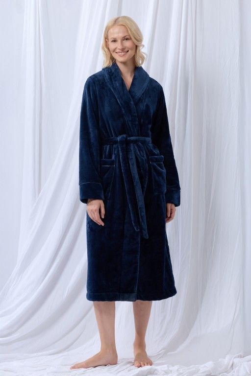 Een elegante kamerjas in fleece van Lords & Lilies. Overslagmodel met riem. Ideaal voor die lange, koude winteravonden. Mooi, lang model en kuffelzacht.