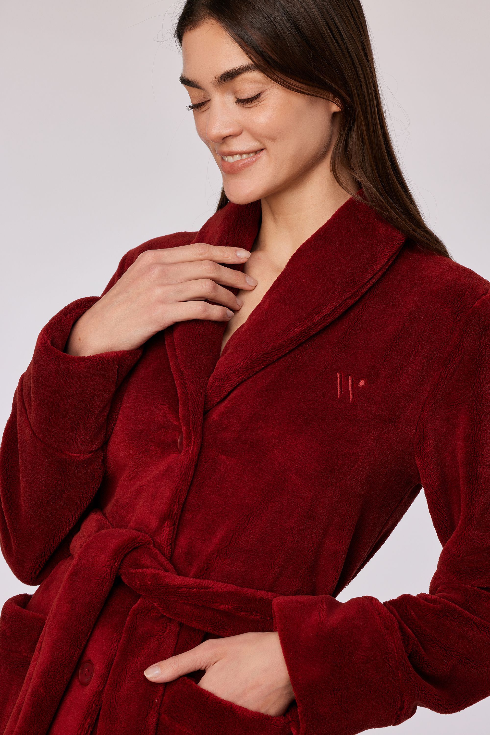 De Woody dameskamerjas in zachte, elegante fleece combineert comfort met stijl. De luxueuze, zachte fleece houdt je heerlijk warm en cosy tijdens koude ochtenden of relaxte avonden thuis. De comfortabele pasvorm en praktische zakken bieden optimale bewegingsvrijheid, terwijl het elegante design met subtiele Woody-details een stijlvolle uitstraling geeft. Perfect om te loungen, ontspannen of comfortabel thuis te genieten. Je kan deze comfortabele en elegante kamerjas voor dames kopen op onze webshop.