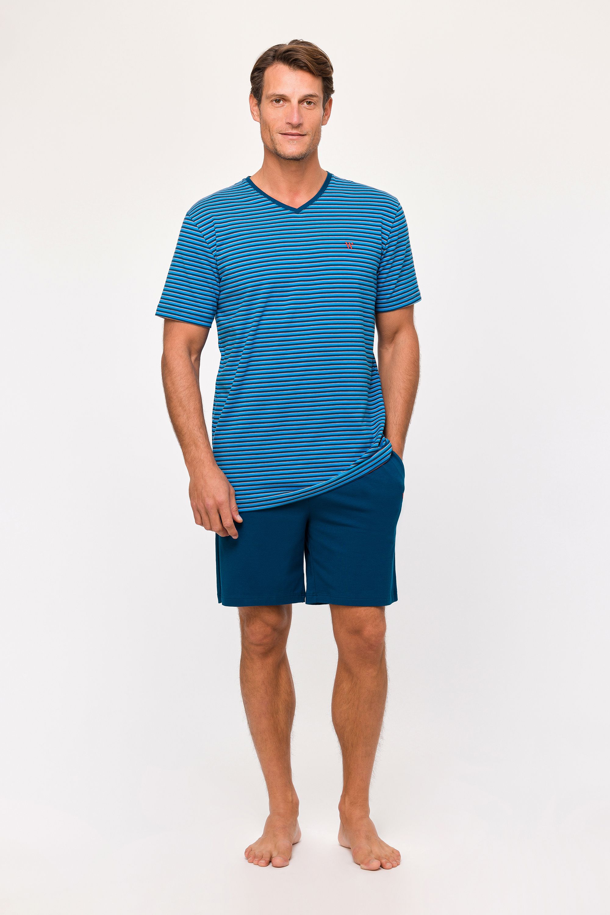 De heren collectie van Woody! Aangename pyjama in jersey katoen. Model met korte mouwen en een short.