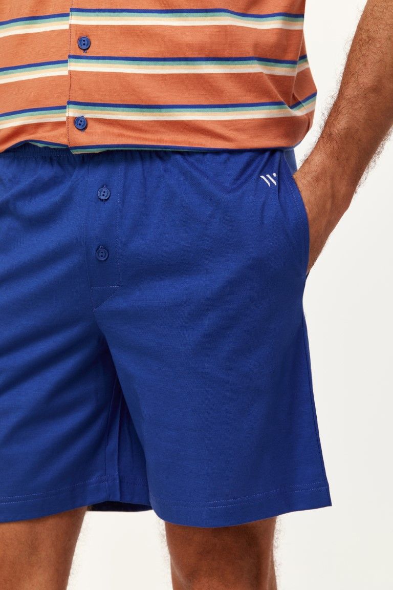 Deze mooie Woody pyjama voor heren heeft een doorknoop T-shirt met korte mouwen en een korte broek. Fijne gemercericeerde katoen.