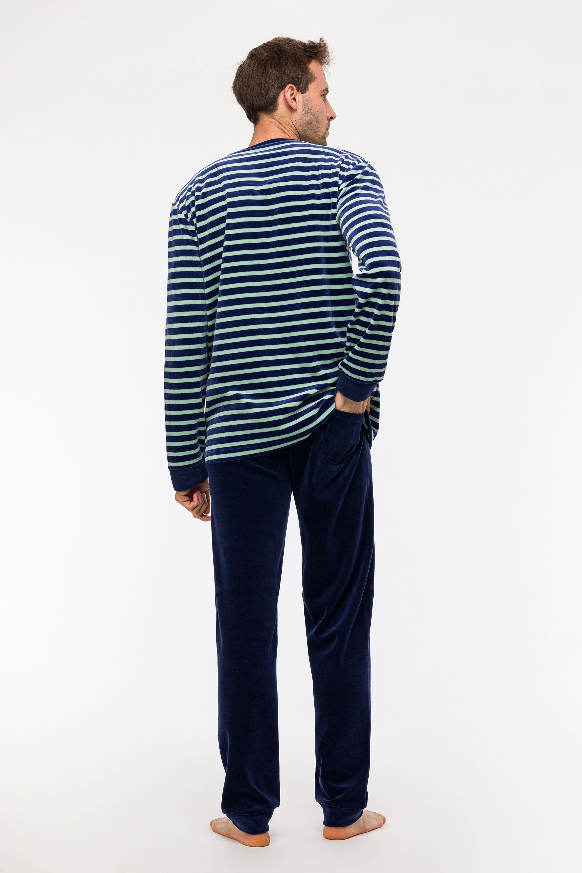 Woody Jongens-Heren Pyjama blauw-groene streep