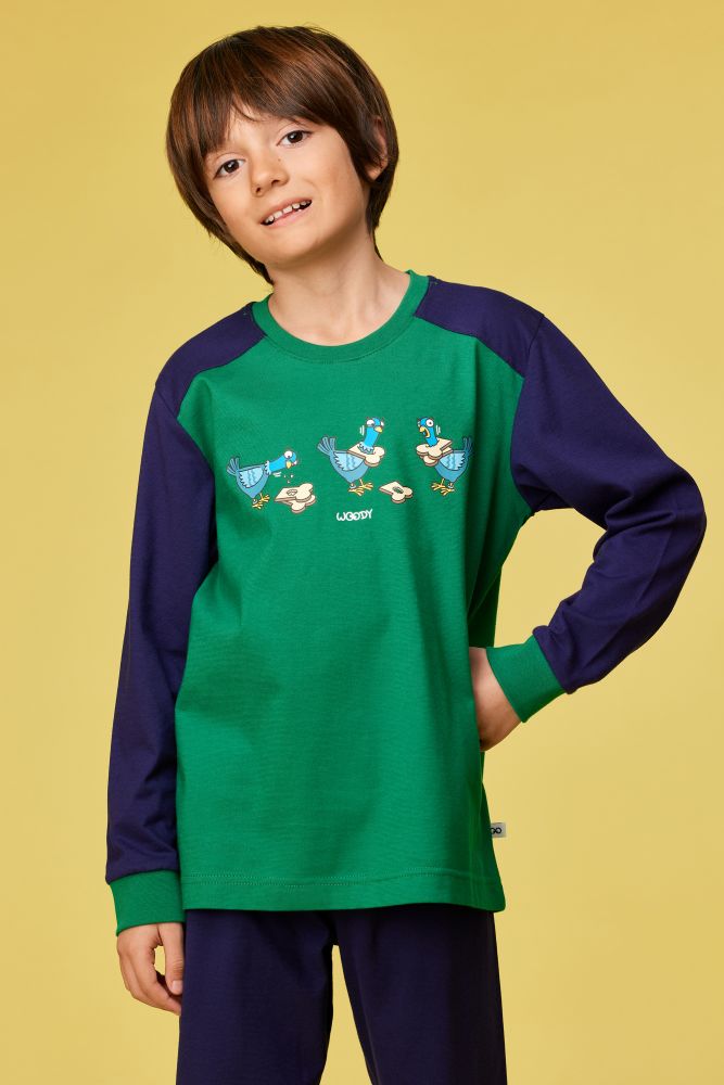 Woody Jongens-Heren pyjama donkergroen