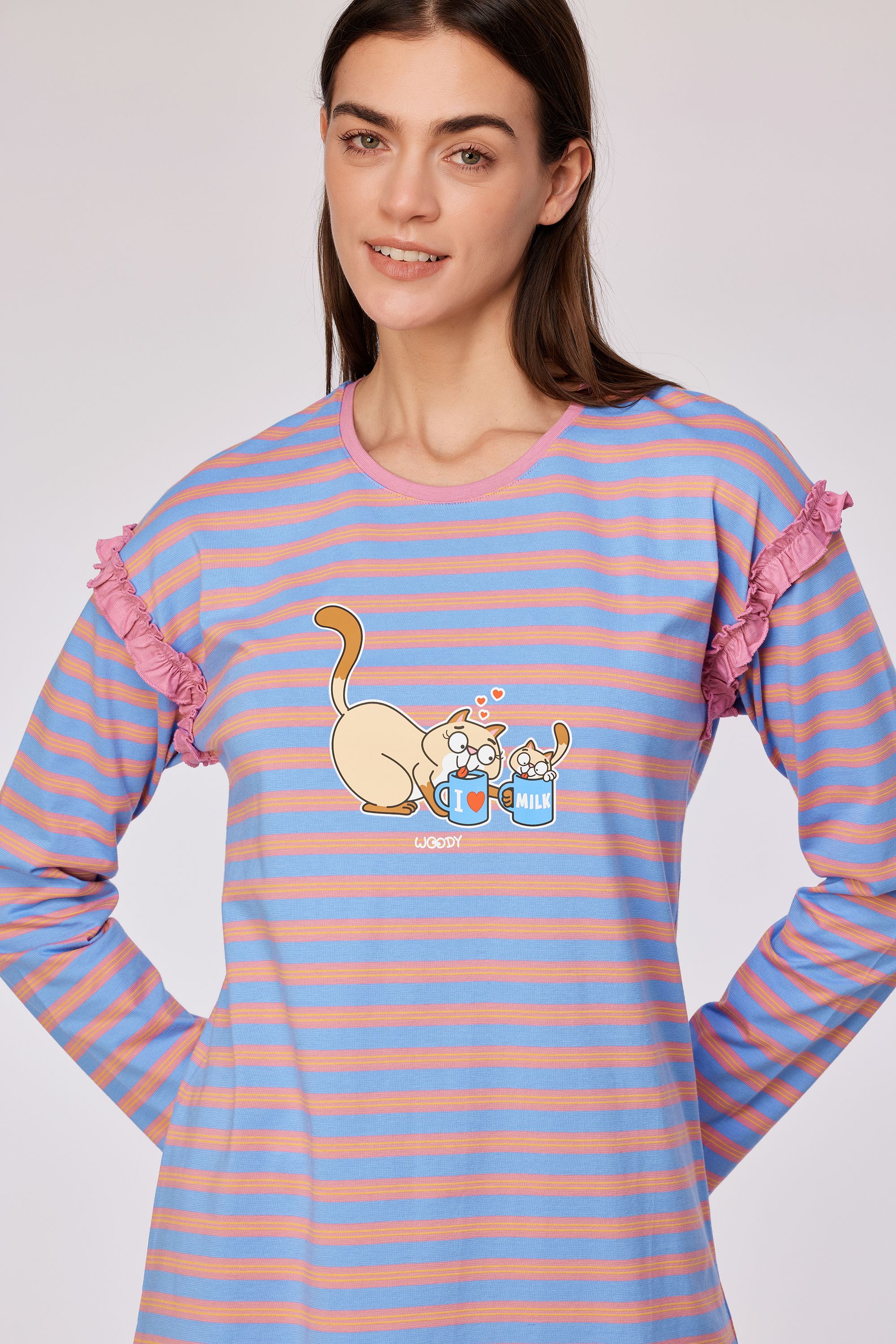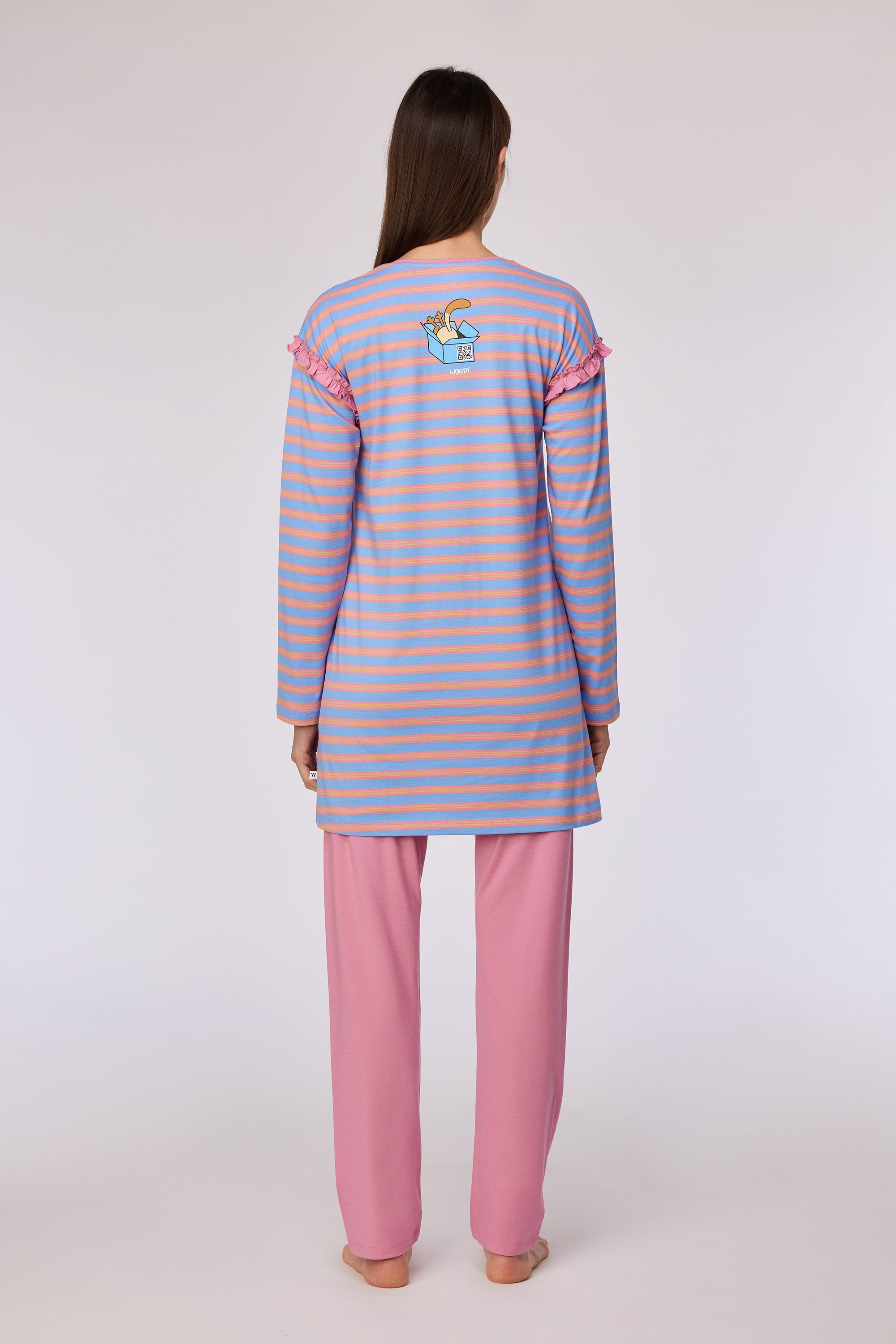 Woody Meisjes-Dames pyjama blauw-roze streep
