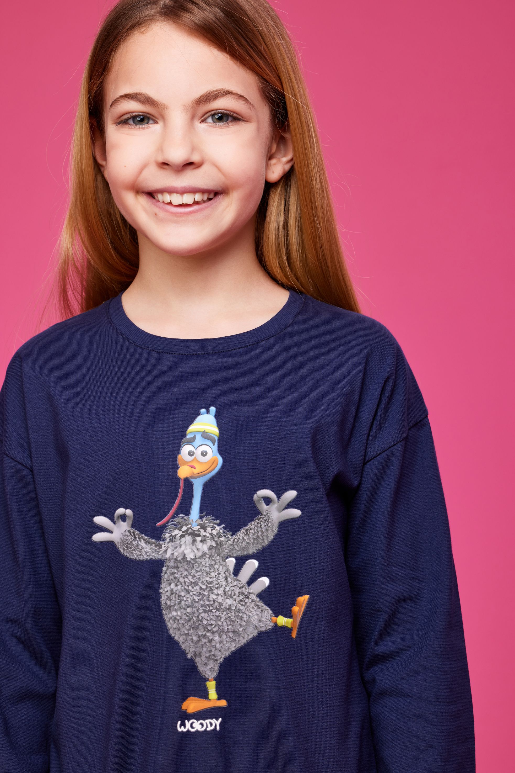 Deze coole Woody winterpyjama, voor meisjes heeft een vestje met een losse strop en een lange broek. De witte accenten lichten op in het donker door de glow-in-the-dark details. Beleef de magische slaapwereld van Woody. De zachte jersey katoen behoudt zijn vorm en uitstraling, ook na veelvuldig wassen.