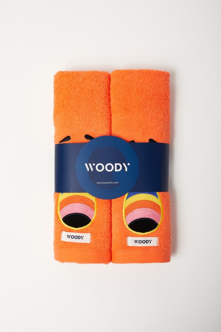Leuke set handdoeken van Woody. 1 set bevat 2 handdoeken (50cm x100cm) en 2 washandjes. Het is vrolijk wassen met Woody.