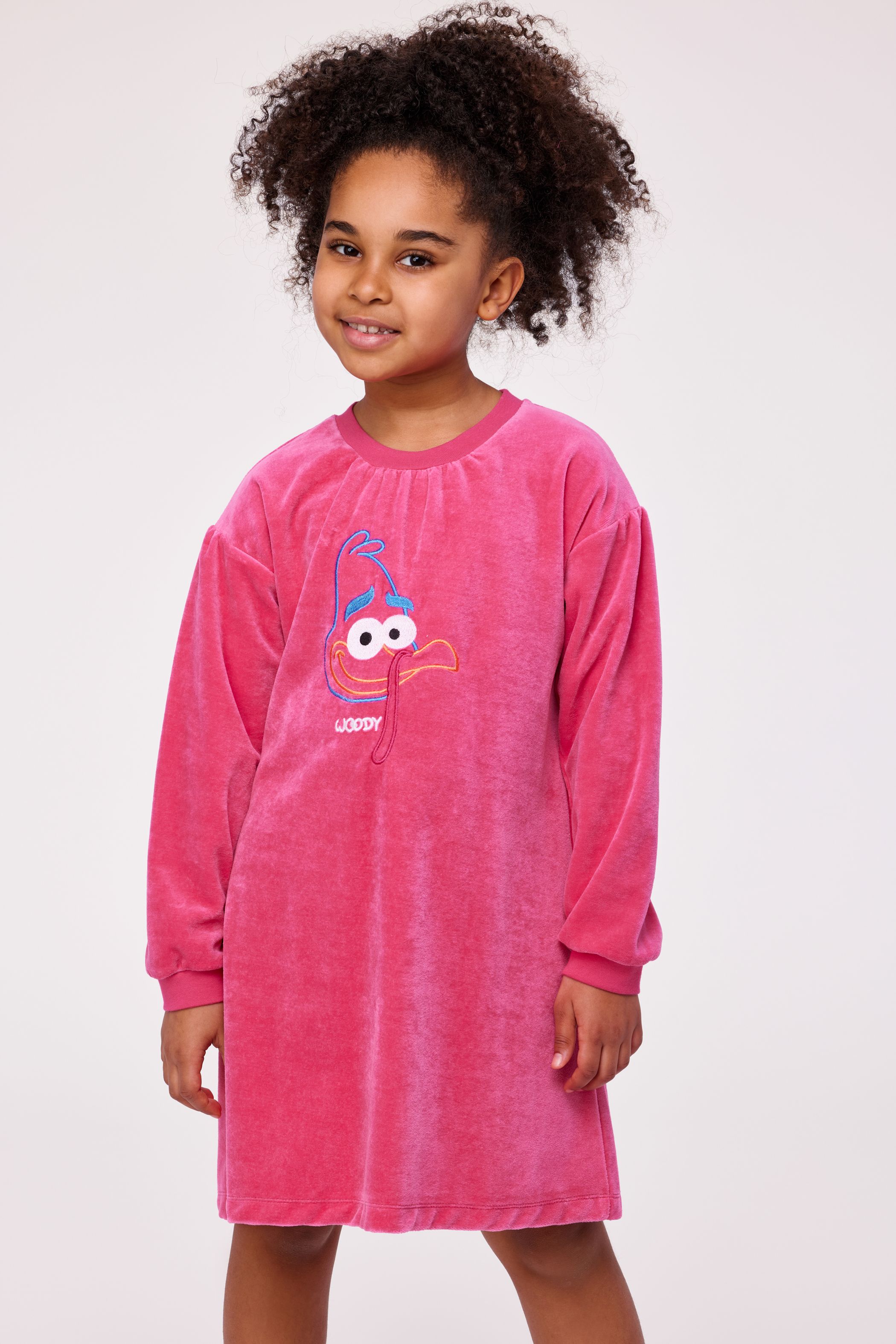 Dit mooie Woody nachtkleedje heeft lange mouwen en is lekker zacht en warm. Het slaapkleed is gemaakt uit een zachte velours kwaliteit, die zijn vorm en uitstraling behoudt, ook na veelvuldig wassen. Beleef de magische slaapwereld van Woody.