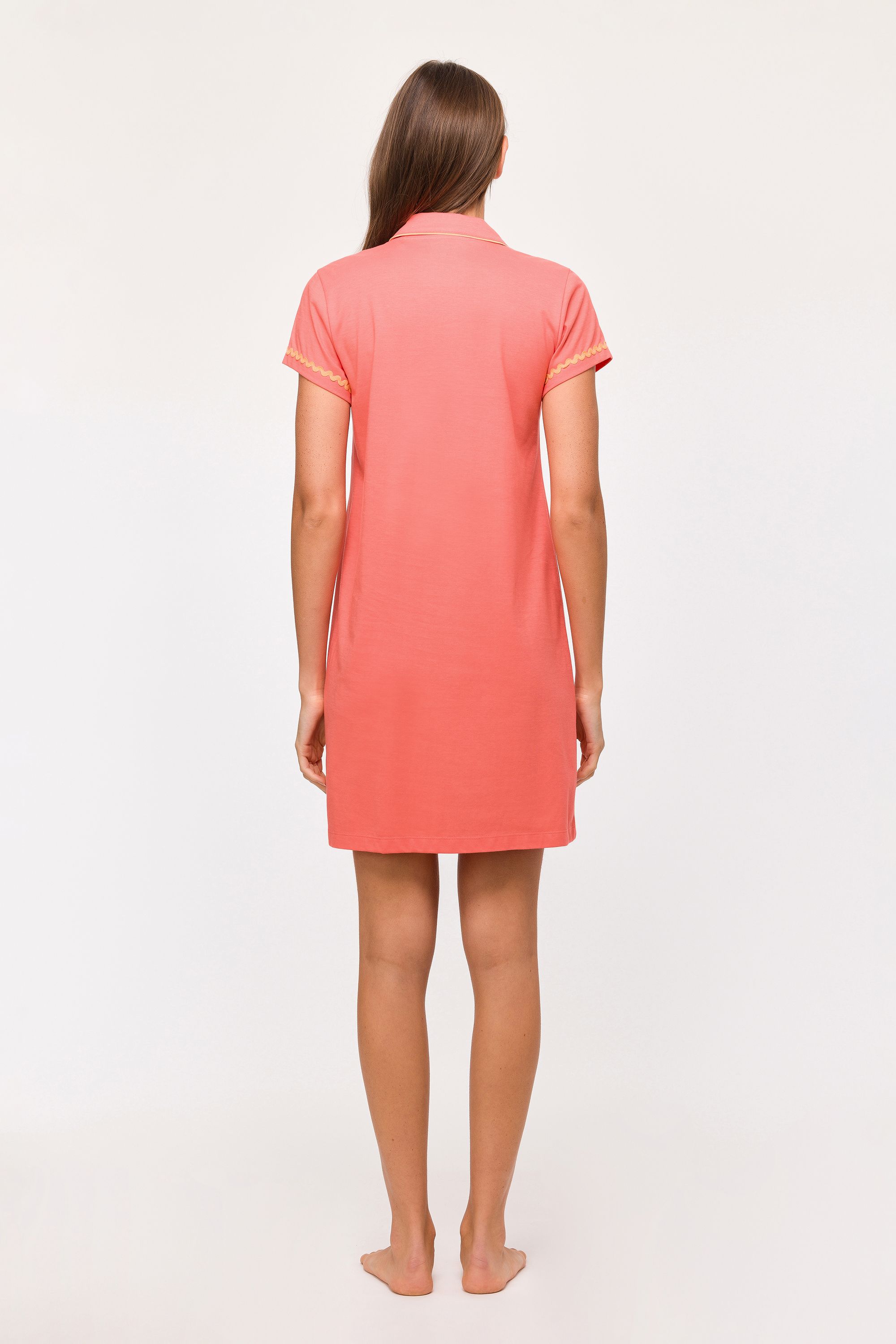 Dit elegant Woody nachtkleedje heeft korte mouwen en komt tot op de knie. Heel leuk met een rij knoopjes vooraan. De zachte jersey katoen behoudt zijn vorm en uitstraling, ook na veelvuldig wassen.