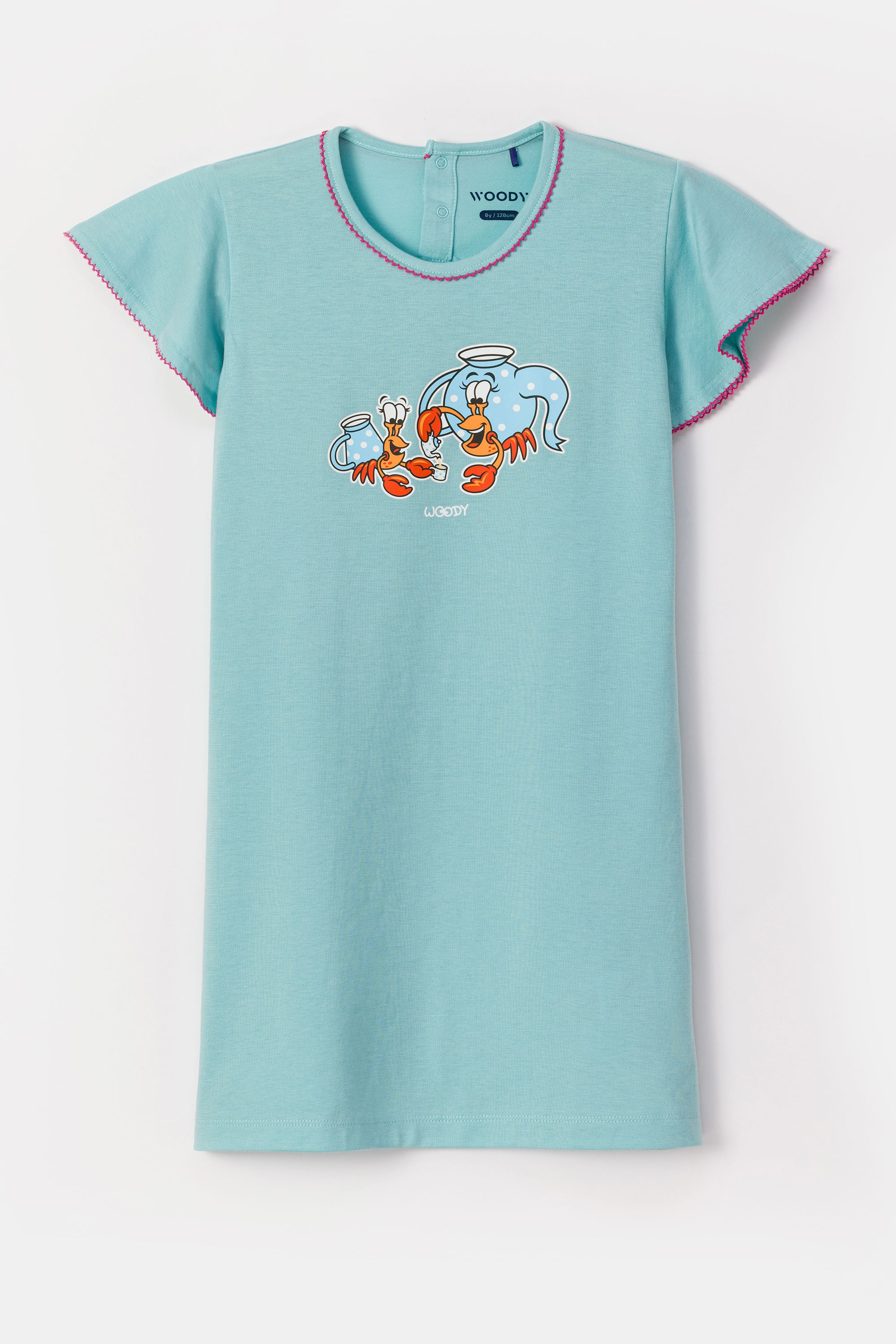 Dit mooi Woody nachtkleedje heeft korte mouwen met fronsjes en komt tot op de knie. Koop dit slaapjurkje nu online. De zachte jersey katoen behoudt zijn vorm en uitstraling, ook na veelvuldig wassen.