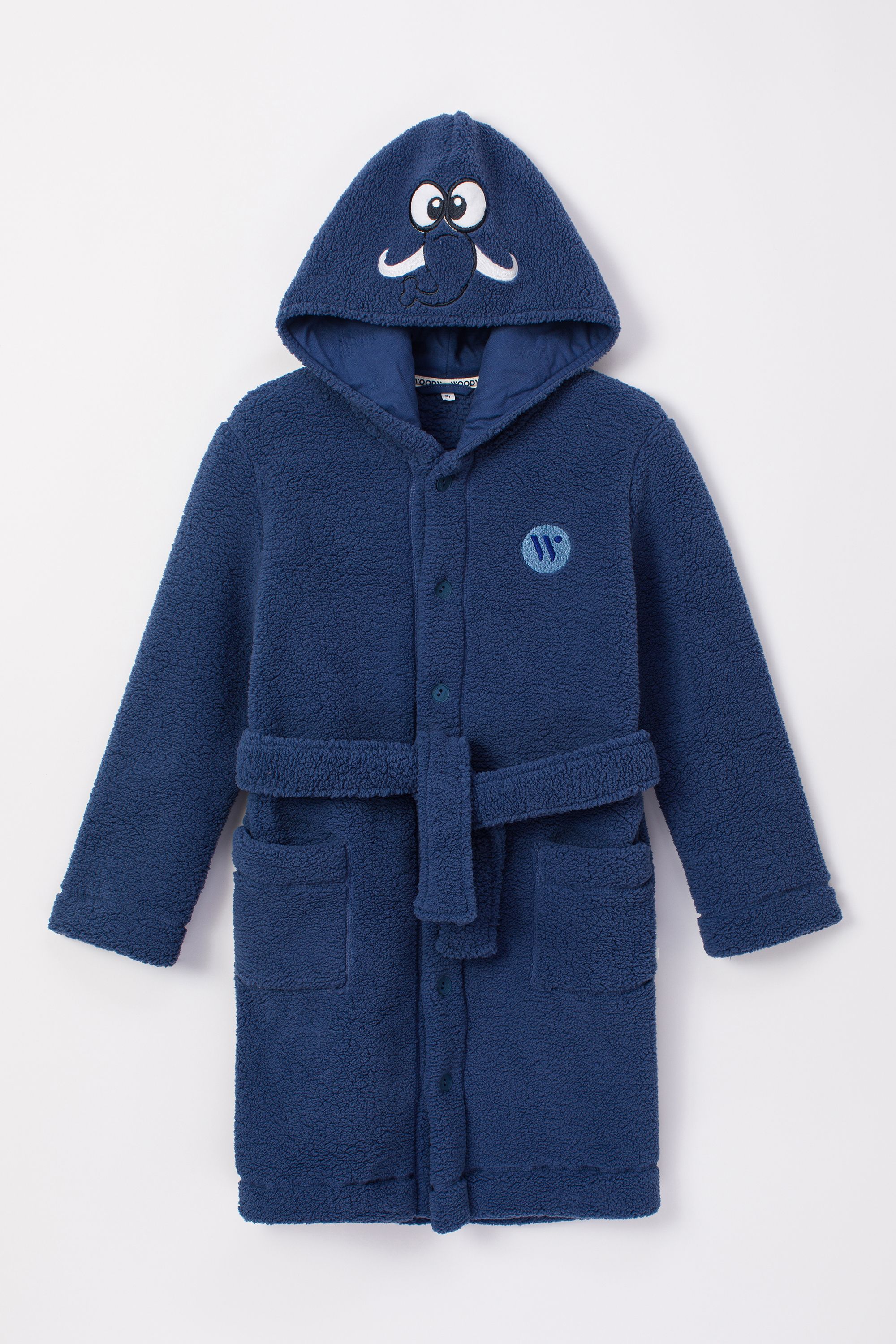 Een leuke Woody kamerjas in een zachte fleece kwaliteit. Lekker zacht en warm. Met knoopjes vooraan en een kap.
